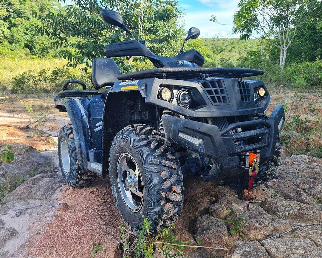 O Tactic 400 adapta-se a qualquer desafio. Com transmissão CVT e seletor 4x4/4x2, ele domina todos os terrenos. Seu guincho elétrico e suspensão ajustável garantem preparo para tarefas pesadas e passeios leves.