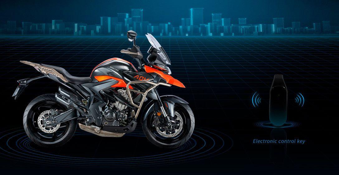 Com tecnologia de criptografia avançada O sistema de ignição sem chave 2.5 da Zontes é altamente seguro e conveniente, permitindo desbloquear a moto a uma distância de 1,5 m. É à prova d'água e pode ser usado mesmo quando a bateria está descarregada.